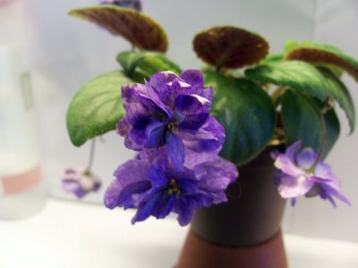 Medans den växer sätter den skott i bladvecken, under babytiden (fram tills de har åtta blad) ska de tas bort för annars orkar den inte växa lika bra. Men sedan ska dessa växa och blir då nya "grenar". Man kan trimma den och få den att växa åt det håll man vill genom att dra bort blad och "plåga" den lite, man "ska" också se till att växten får tre kronor. Men sådant struntar jag i för jag ska inte showa med mina och tycker inte att jag orkar lägga kraft på sådant, de blir vackra ändå.